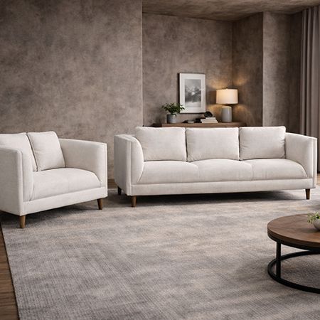 Este juego de sala compuesto por sofá y love seat es la elección ideal para quienes buscan diseño sofisticado, comodidad y versatilidad en su hogar. Tapizado en fina tela color silver, aporta una sensación de amplitud, luminosidad y elegancia que transforma cualquier espacio en un ambiente moderno y acogedor.