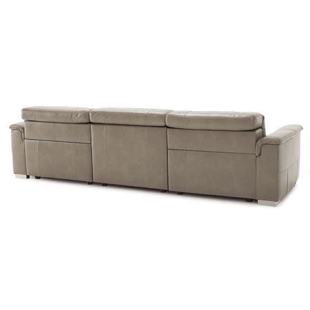 Está tapizado en piel natural y PVC de alta resistencia en color gris, una combinación que garantiza durabilidad, fácil mantenimiento y una apariencia sofisticada. Su diseño contemporáneo lo convierte en el protagonista perfecto para salas modernas, salas de TV o espacios de descanso premium.