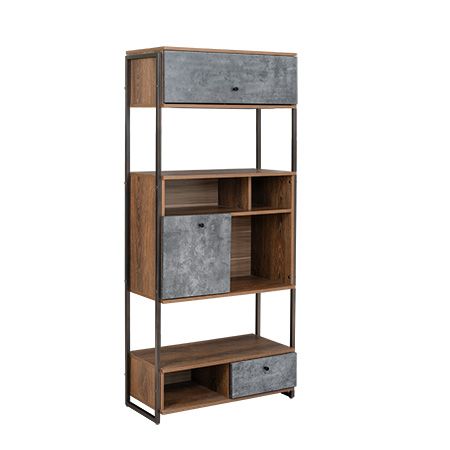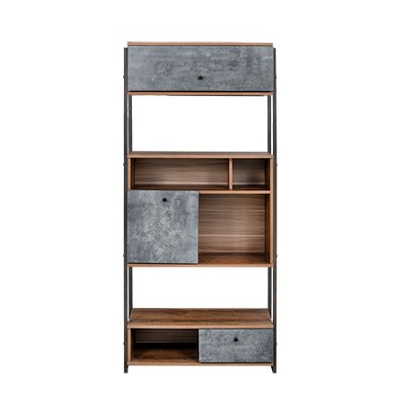 Organiza y decora tu espacio con el librero modelo Barret, una pieza de estilo industrial moderno que combina la calidez de la madera con el carácter del acabado tipo concreto. Su estructura metálica le brinda solidez y durabilidad, mientras que sus diferentes compartimentos y puertas ofrecen una solución práctica para guardar y exhibir libros, decoraciones o accesorios.