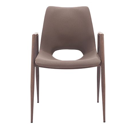 Esta silla de comedor tiene líneas urbanas modernas de mediados de siglo y queda genial en cualquier espacio, con un robusto marco de acero que recubre vinilo de alta resistencia y patas acabadas en nogal de acero envuelto en vinilo de transferencia térmica, cabe en cualquier cocina, comedor o barra de casa, y es duradera para uso en hostelería. DIMENSIONES: 55 de ancho x 59 de diámetro x 83 de alto MATERIALES: Imitación cuero 100% poliuretano, contrachapado, acero sintético